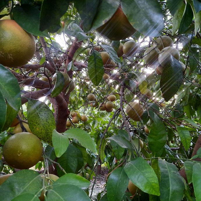 Mais ces fruits sont mûrs ! Ce sont les taux de sucre, d’acidité et de jus qui déterminent le début de la récolte. Dans les pays tropicaux, les agrumes n’acquièrent jamais vraiment la couleur orange/jaune standard à cause de la faible amplitude thermique. Dans les circuits conventionnels, on trouve des agrumes de couleur orange/jaune car une fois récoltés, ils sont stockés en chambre froide et éventuellement « déverdis » au moyen de gazage à l’éthylène.